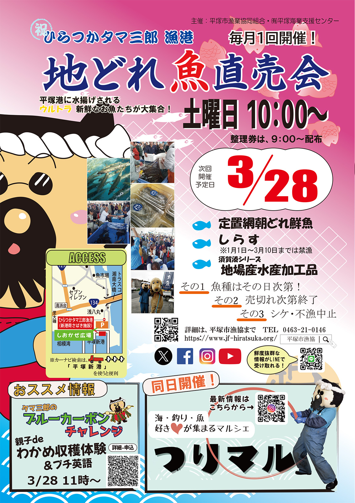🐟平塚市漁業協同組合🐟 次回、地どれ魚直売会は3/28開催予定です。詳細は メニュー内「地どれ魚直売会」⬇をご確認ください😀
