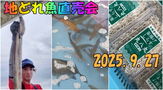 2025.9.27地どれ魚直売会ec 2025/09/27 672 × 372 「地どれ魚直売会」終了。今日も暑い中をたくさんの方にお越しいただきありがとうございました。次回は10/25(土)10:00スタートです!