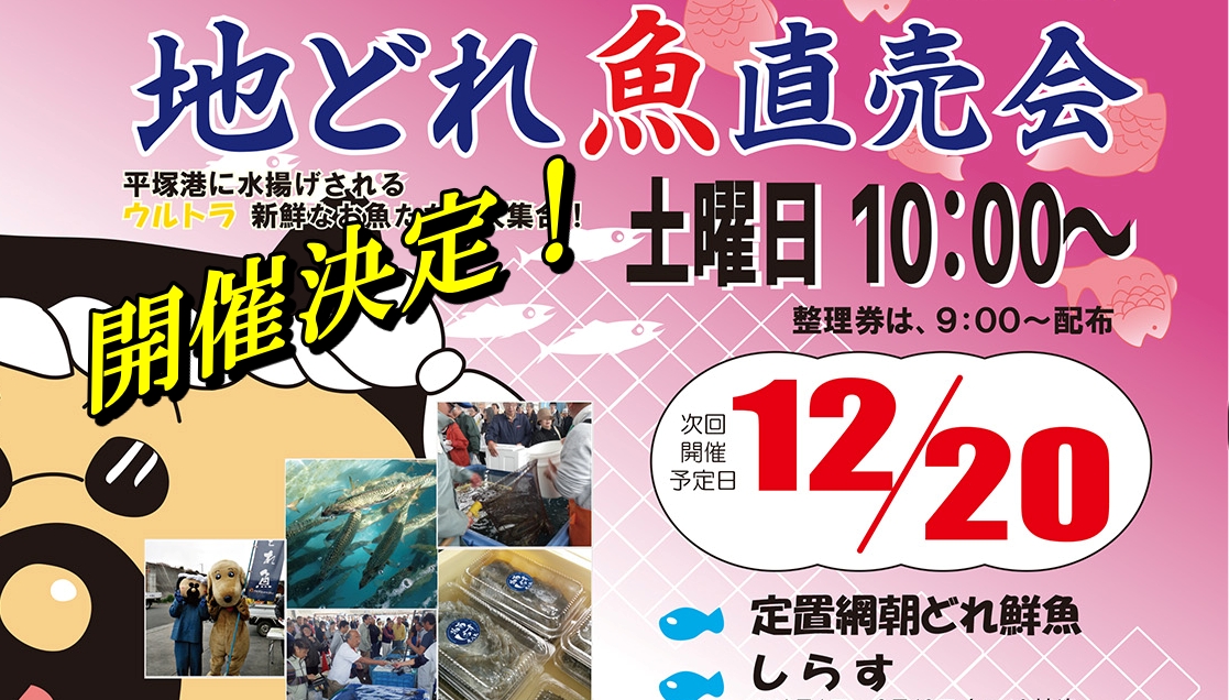 「地どれ魚直売会」本日12/20開催決定!定置網朝どれ鮮魚・活魚、お魚加工品などを販売。ぜひお出かけくださいませ~