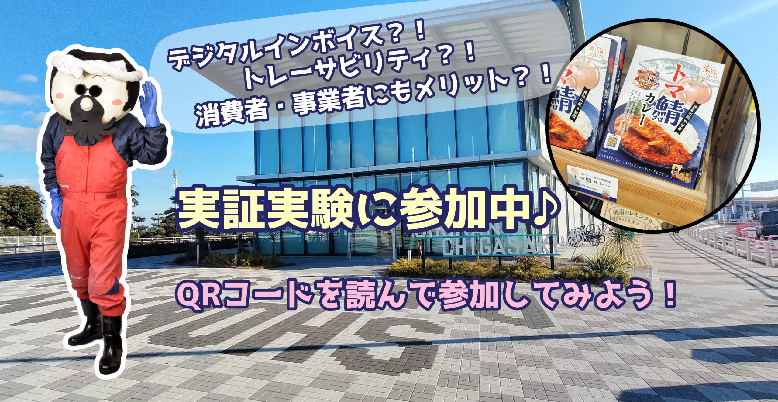20260104トマ鯖トレサビ茅ケ崎道の駅 2026/01/03 2560 × 1323 平塚市のトレーサビリティ・デジタルインボイス実証実験に参加中!トマ鯖カレーに貼ってある二次元コードを読み込んで、食品の足跡を見てみよう♪(道の駅湘南茅ケ崎限定!)