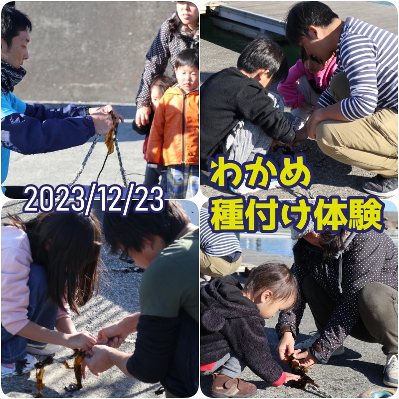 20231223ブルーカーボンわかめ種苗つけた体験2