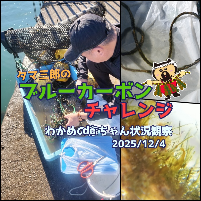 タマ三郎のブルーカーボンチャレンジ。ワカメの苗づくり。成長具合はどうかな?
