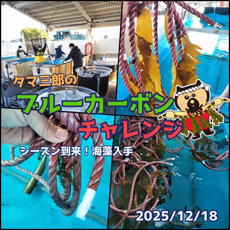 タマ三郎のブルーカーボンチャレンジ!ワカメ、カジメ、アカモクを三浦半島に受け取りに行きました。