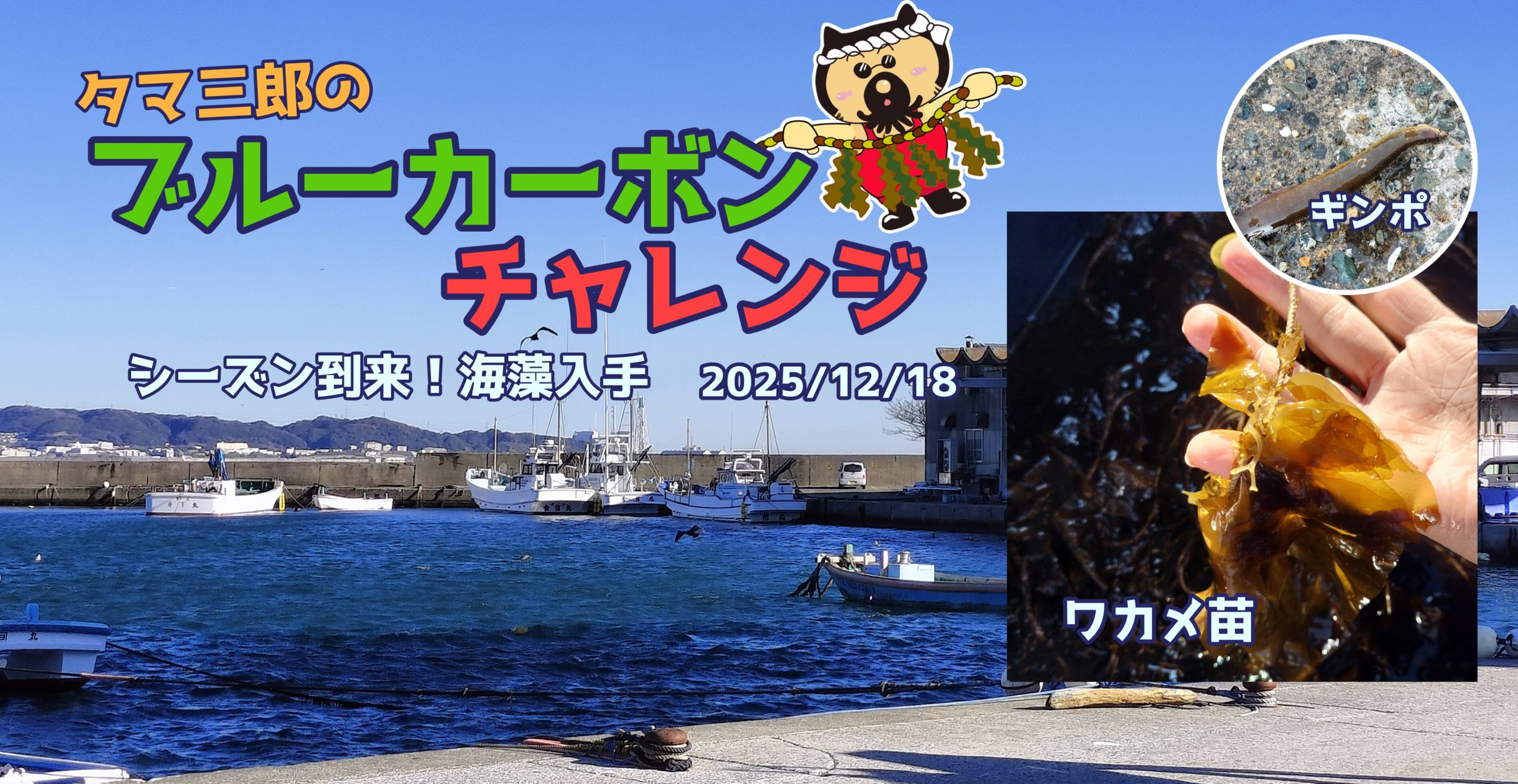 タマ三郎のブルーカーボンチャレンジ!ワカメ、カジメ、アカモクを三浦半島に受け取りに行きました。