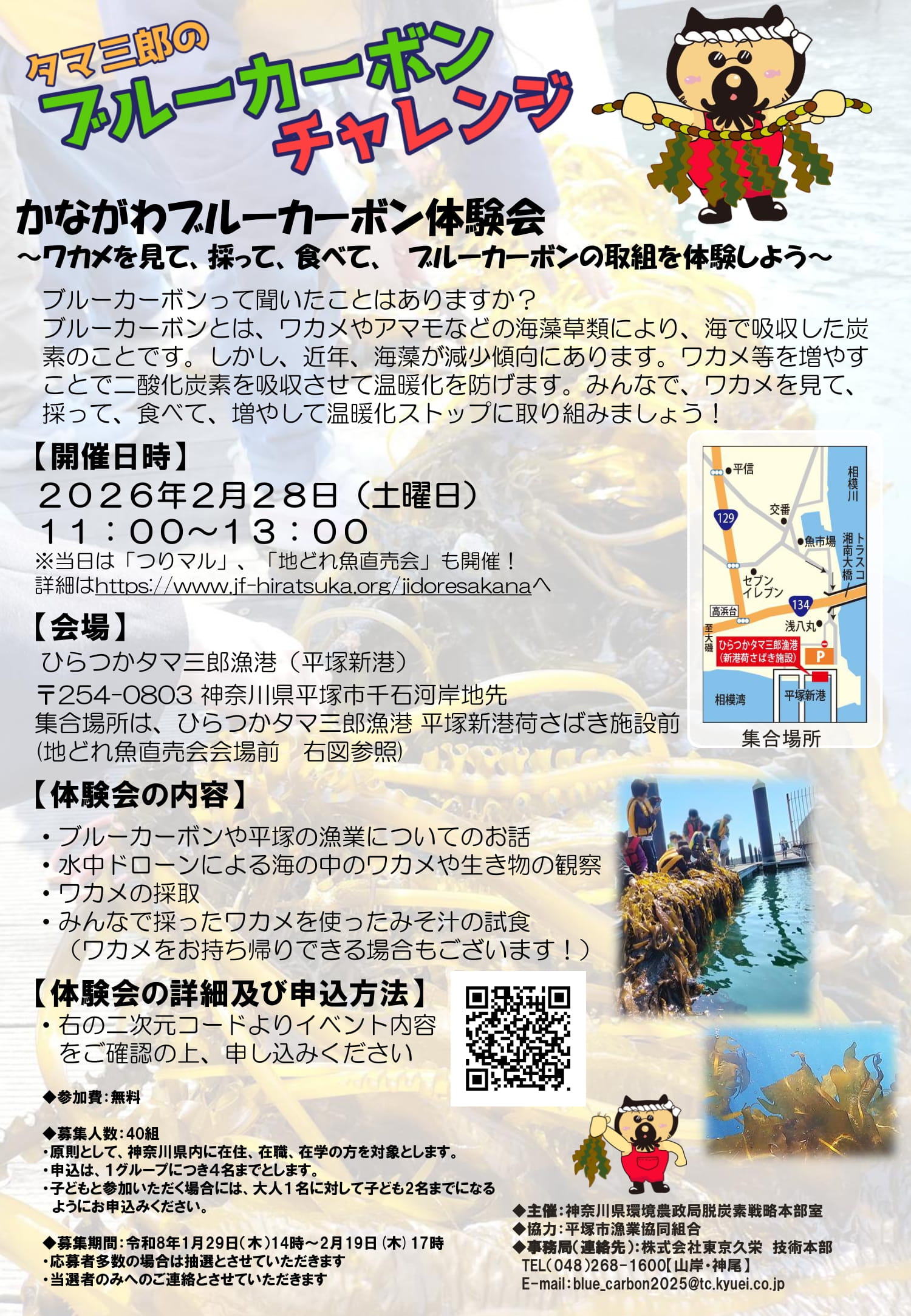 ブルーカーボン体験会チラシ(最終版)_20260126-1 2026/01/31 1500 × 2167 「かながわブルーカーボン体験会」2/28開催!~ひらつかタマ三郎漁港deワカメを見て、採って、食べて、ブルーカーボンの取組を体験しよう~