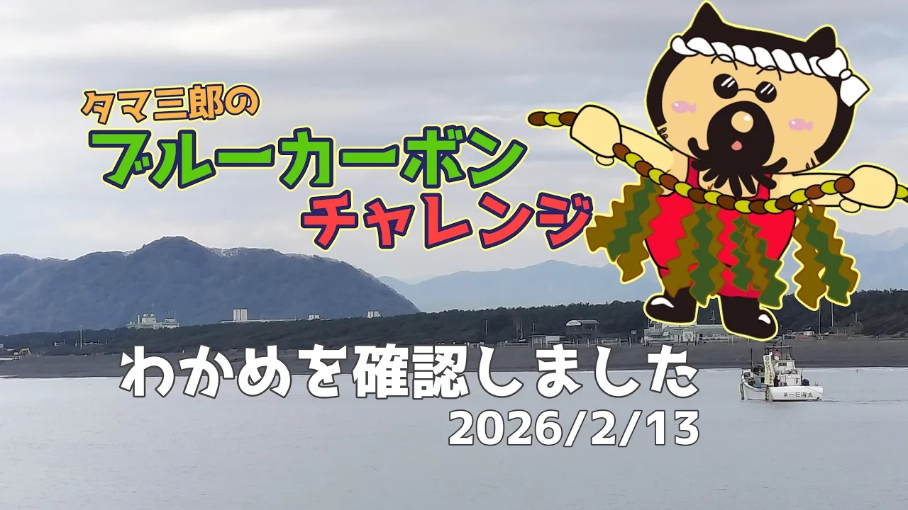 タマ三郎のブルーカーボンチャレンジ!ワカメ苗設置から約1ヵ月半、漁港内を確認♪